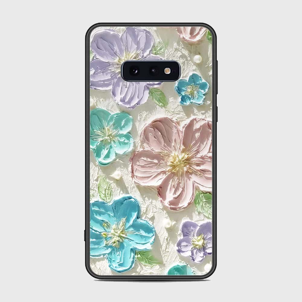 Samsung Galaxy S10e Cover - Floral Series - Design 14 - Blue & Purple - HQ Ultra Shine Premium Infinity Glass Soft Silicon Borders Case