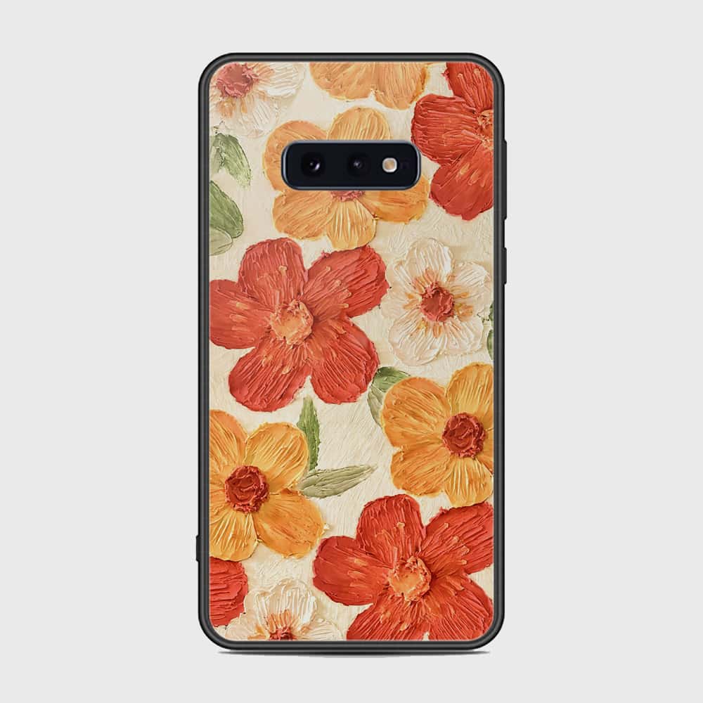 Samsung Galaxy S10e Cover - Floral Series - Design 6 - Red & Orange - HQ Ultra Shine Premium Infinity Glass Soft Silicon Borders Case