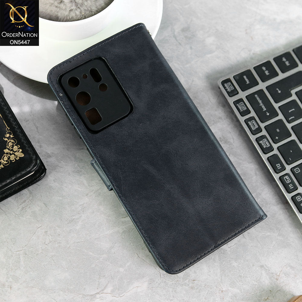Samsung Galaxy S20 Ultra Cover - Blue -  Premium Leather Megantic Flip Book Covers With Card Holding Option