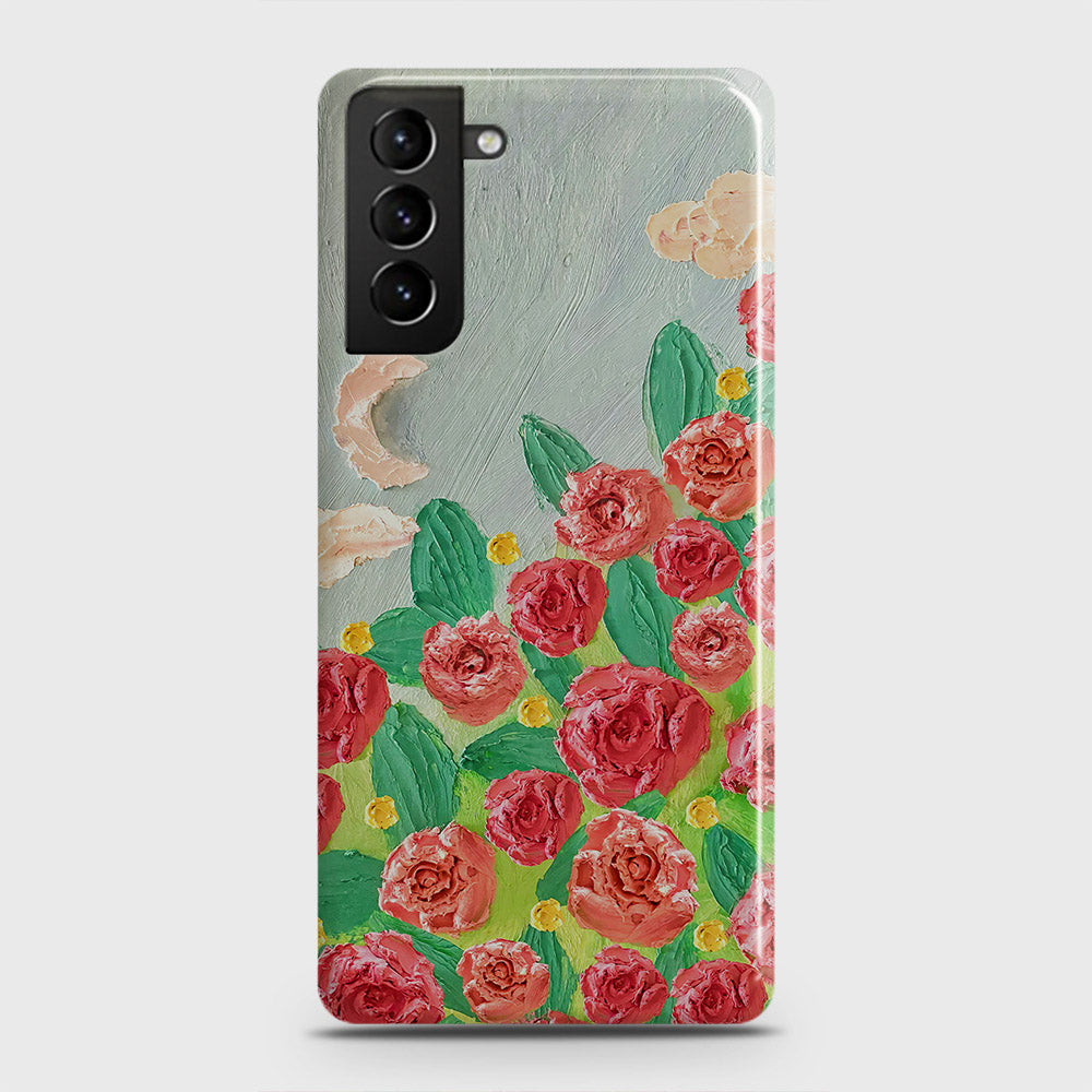 Samsung Galaxy S21 5G Cover - Floral Series - Design 10 - Red & Green - Matte Finish - Snap On Hard Case with LifeTime Colors Guarantee
