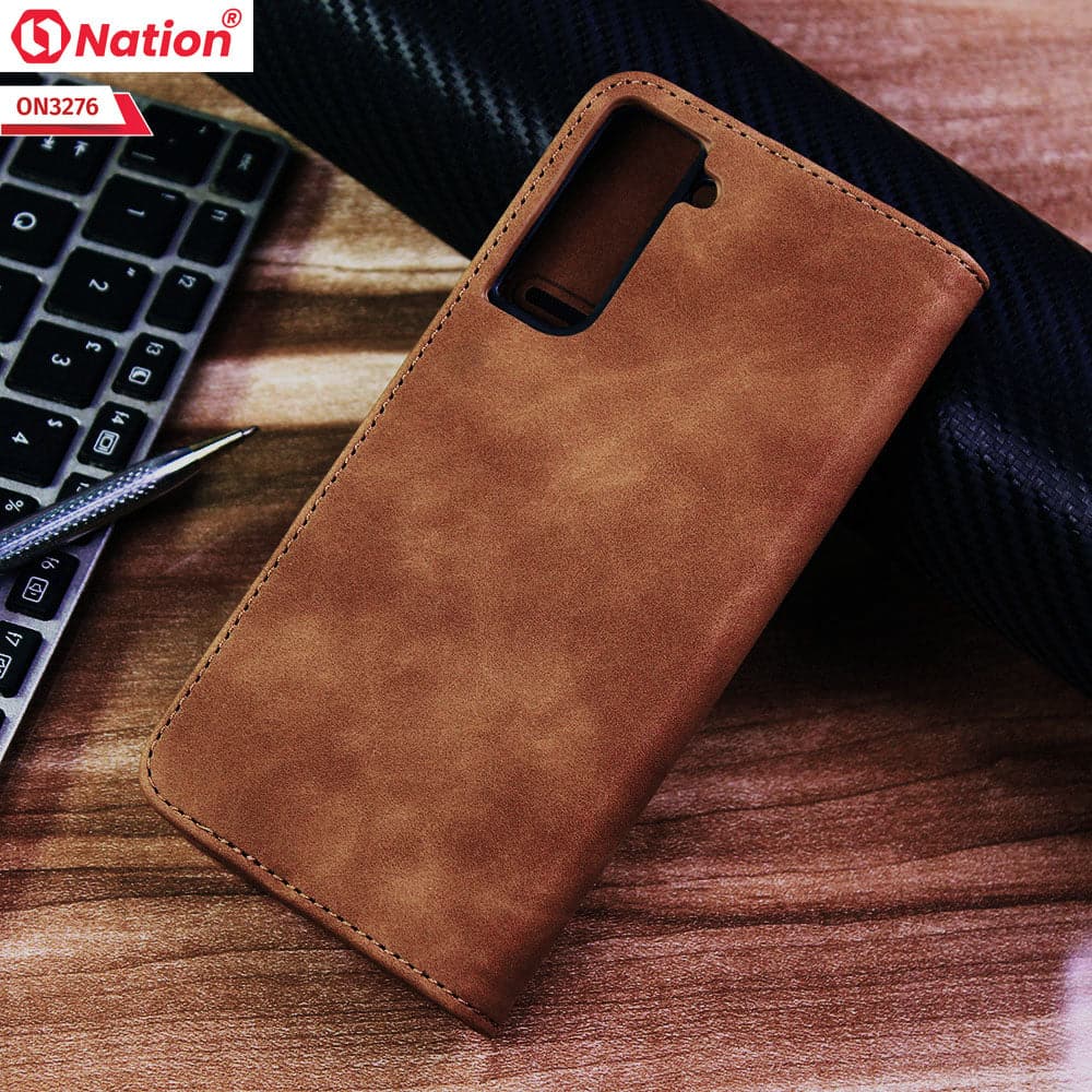 Samsung Galaxy S21 5G Cover - Light Brown - ONation Business Flip Series - Premium Magnetic Leather Wallet Flip book Card Slots Soft Case - ( Stylus Pen Will Not Work Besause Of Magnet)