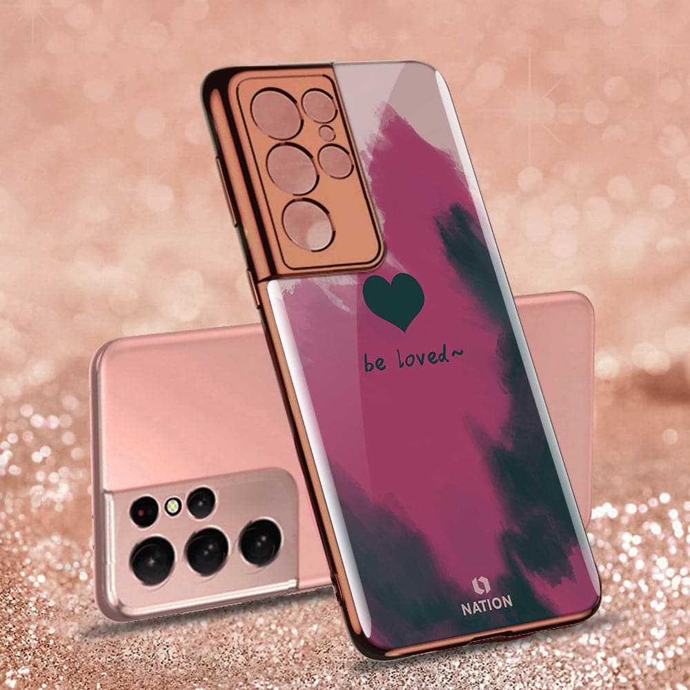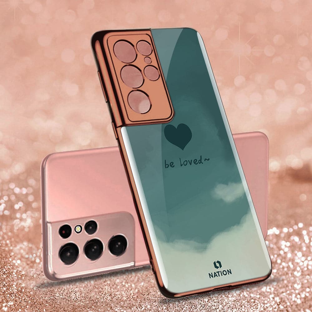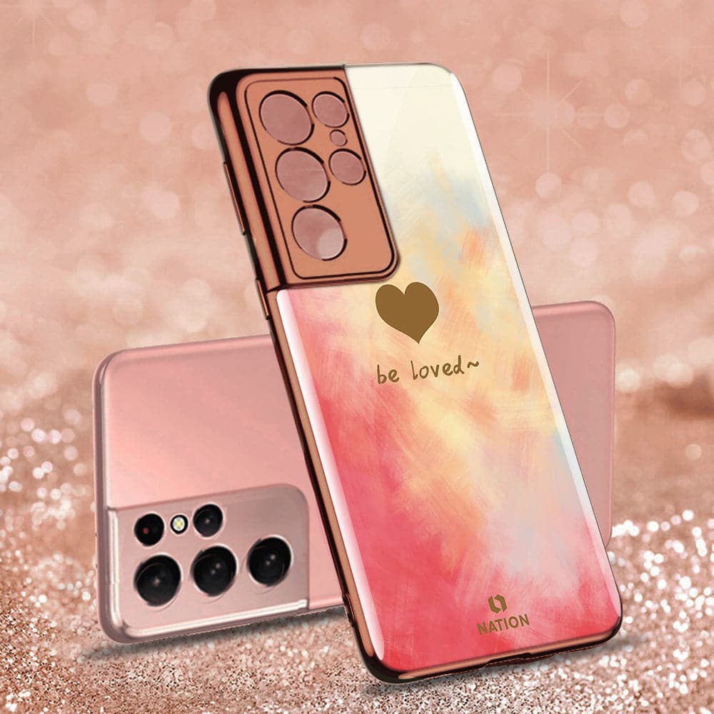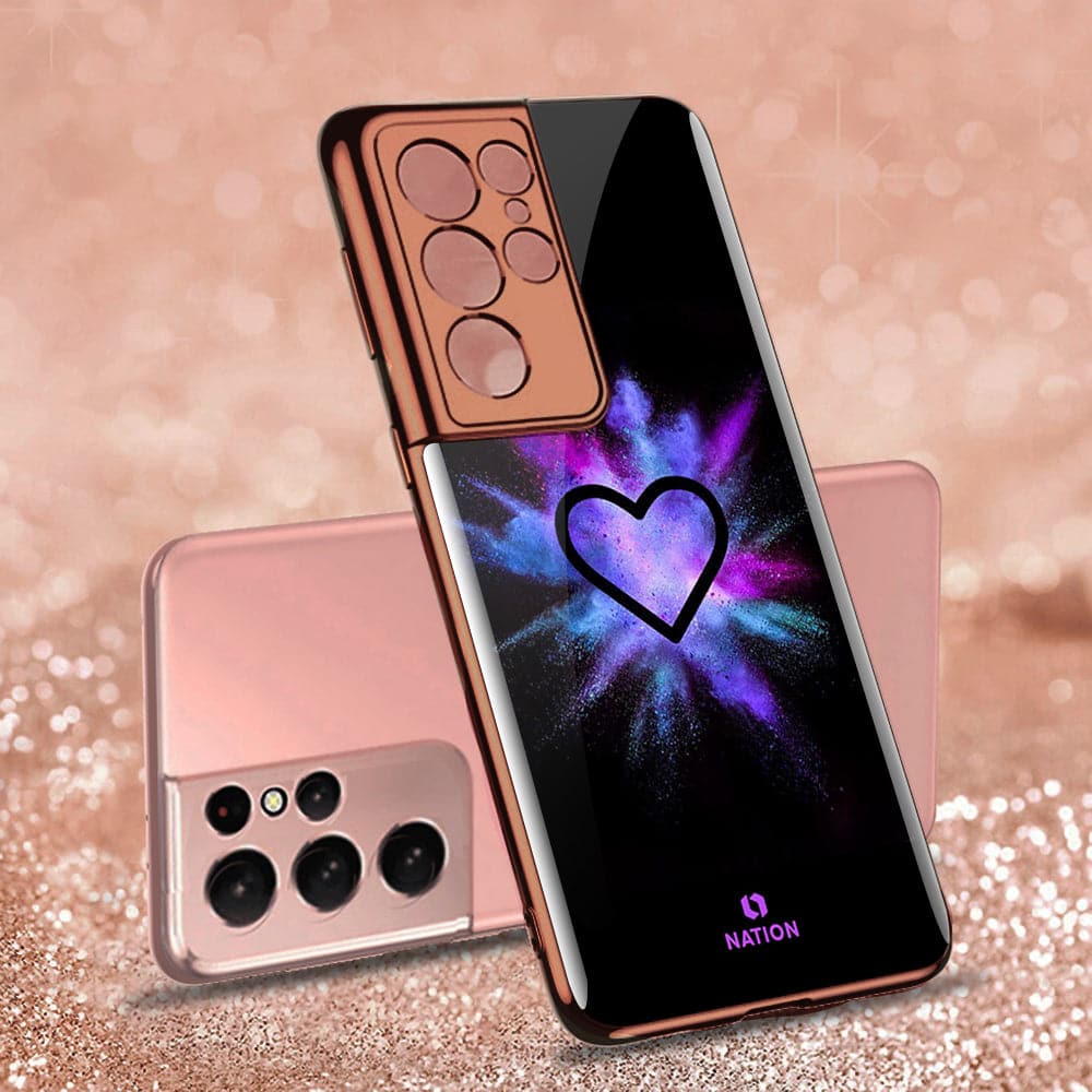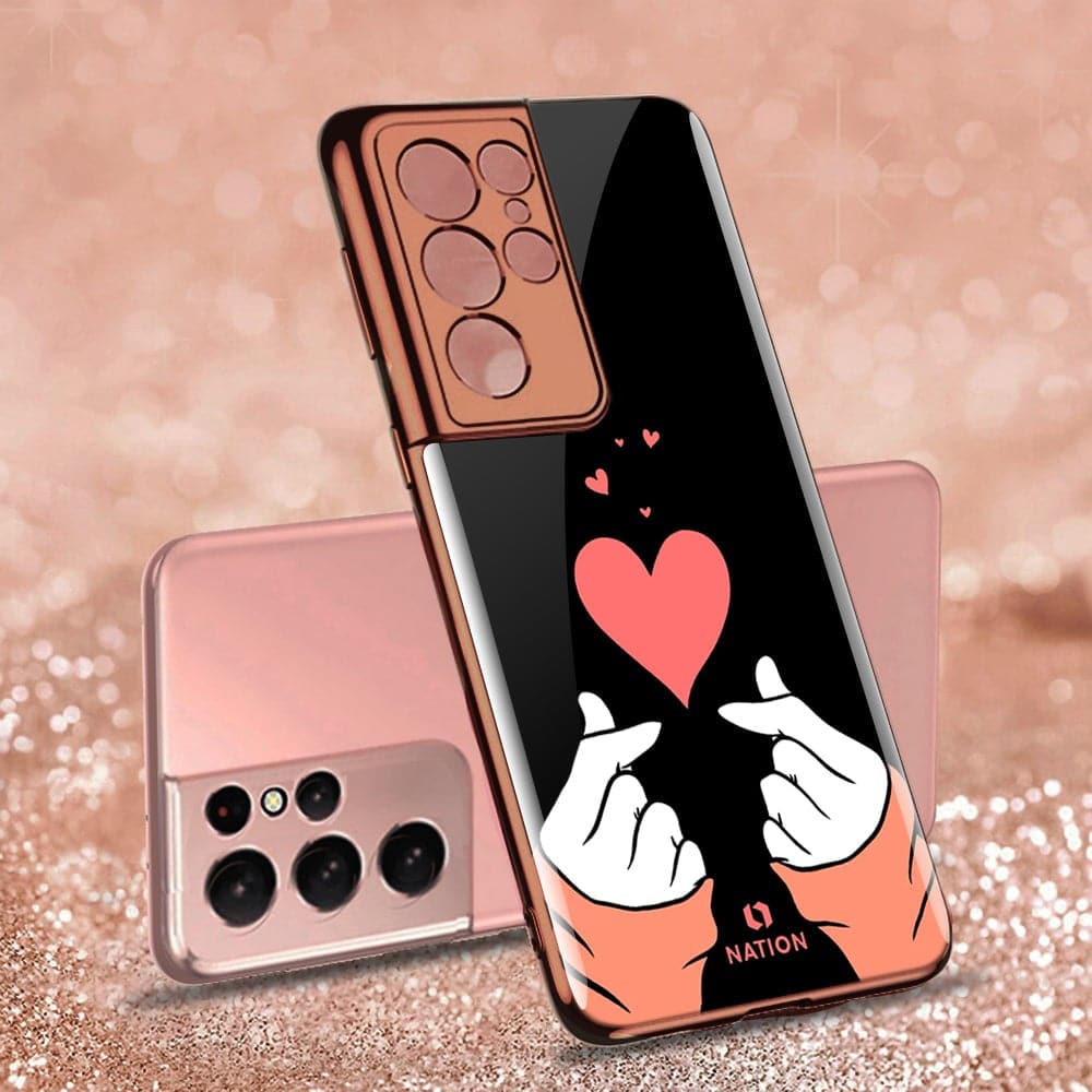 Samsung Galaxy S21 Ultra 5G Cover - Onation Heart Series - HQ Ultra Shine Premium Infinity Glass Soft Silicon Borders Case
