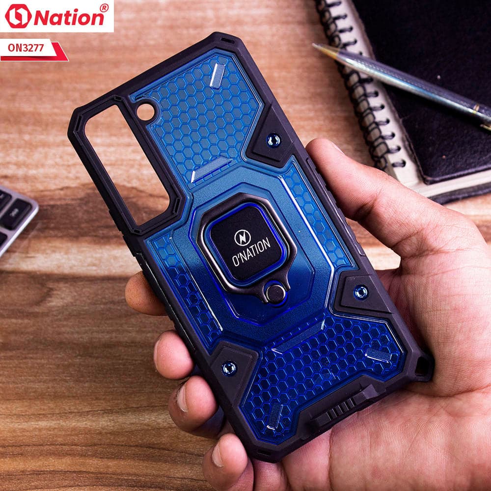 Samsung Galaxy S22 Plus 5G Cover - Blue -  ONation BIBERCAS Series - Honeycomb Shockproof Space Capsule With Magnetic Ring Holder Soft Case