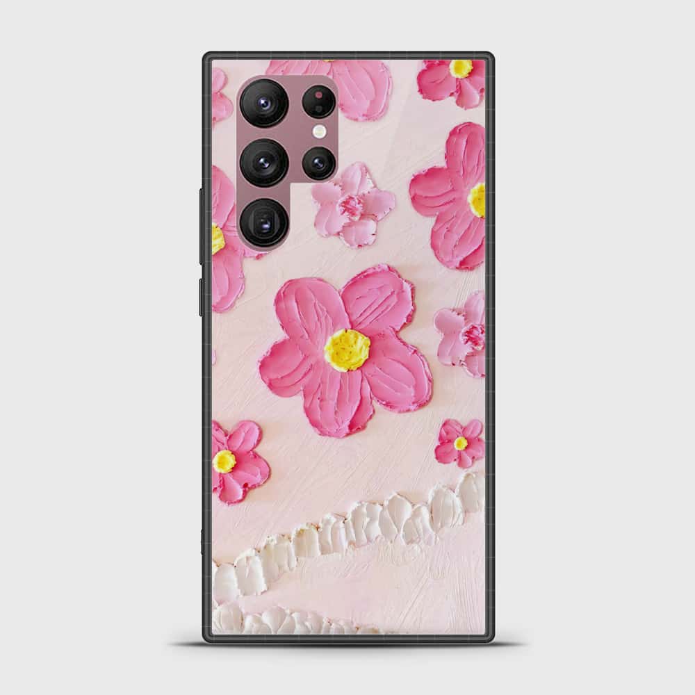 Samsung Galaxy S22 Ultra 5G Cover - Floral Series - Design 2 - Pink - HQ Ultra Shine Premium Infinity Glass Soft Silicon Borders Case