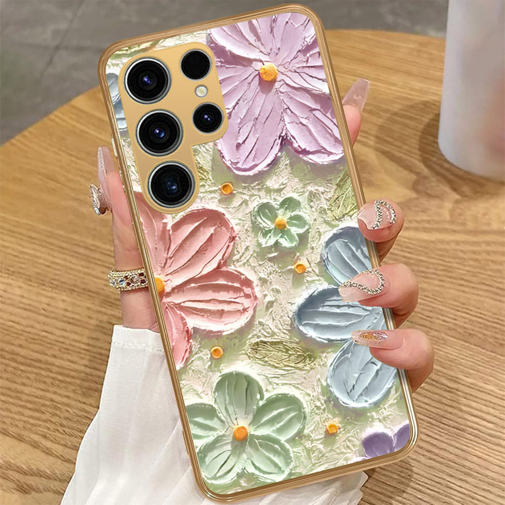 Samsung Galaxy S23 5G - Floral Series - Design 15 - Blue & Green - HQ Premium Shine Durable Golden Electroplate Case