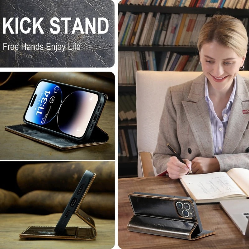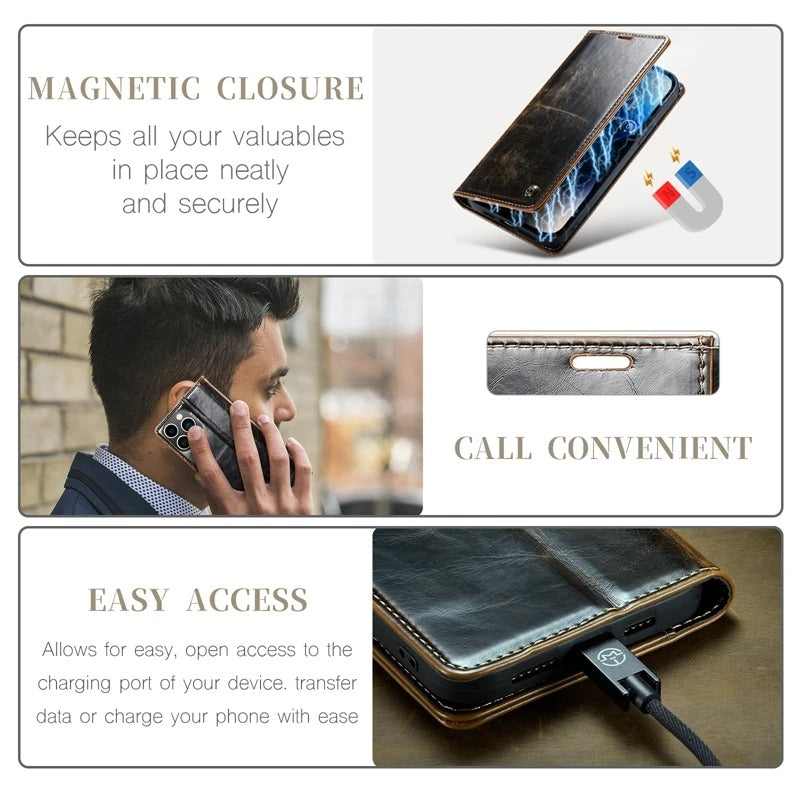 Samsung Galaxy S23 Cover - Brown - CaseMe Classic Leather Flip Book Card Slot Case
