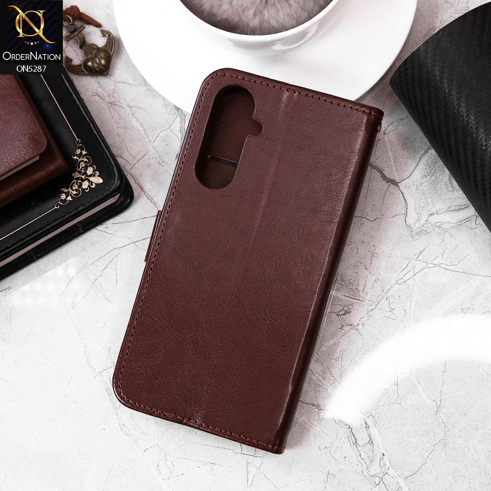 Samsung Galaxy S23 FE Cover - Brown - Premium PU Leather Magnetic Flip Book Card Slots Wallet Soft Case