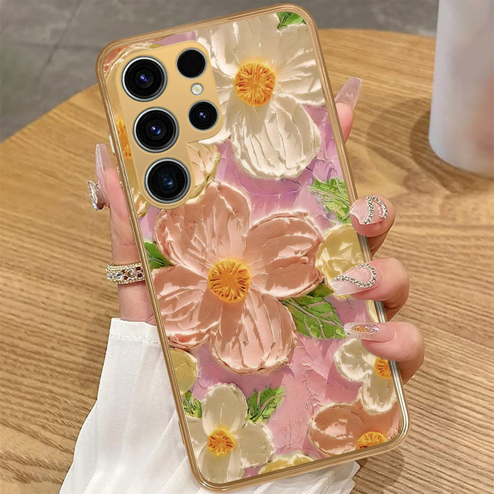 Samsung Galaxy S24 - Floral Series - Design 11 - White & Green - HQ Premium Shine Durable Golden Electroplate Case