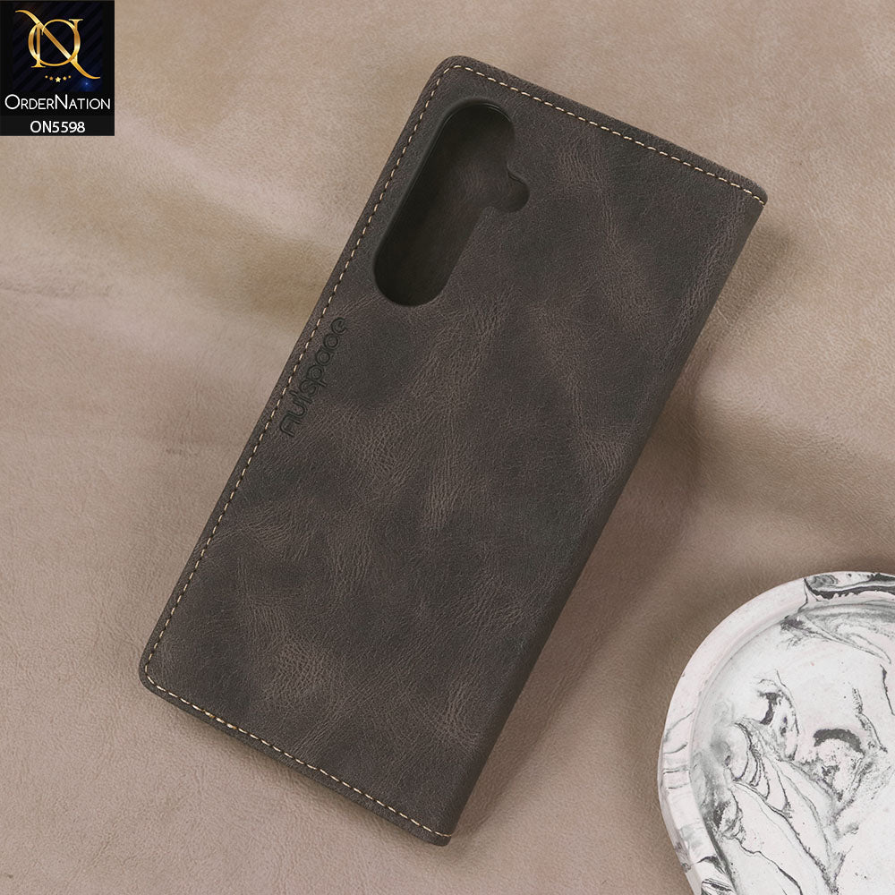 Samsung Galaxy S24 FE Cover - Brown - AutSpace Soft Slim Folio Flip PU Leather RFID Blocking Wallet Case with 2 Cards Slot