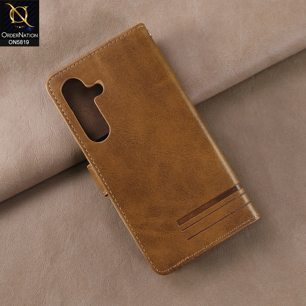 Samsung Galaxy S25 Cover - Light Brown -  Way Out Excellence Quality Soft Tpu Leather Flip Book With Card Holding Slots