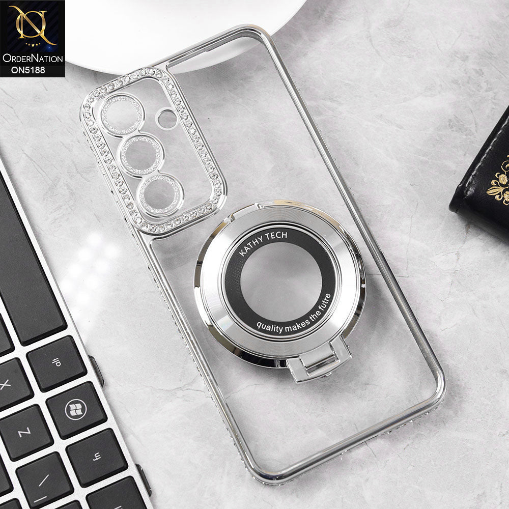 Samsung Galaxy S25 Plus Cover - Silver - Luxury Diamond Rhinestones Color Electroplating Borders Magsafe Magnetic Stand Holder Soft Clear Case With Camera Protection