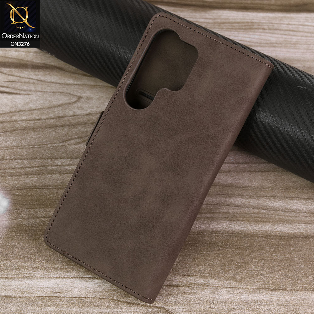 Samsung Galaxy S25 Ultra Cover - Dark Brown - ONation Business Flip Series - Premium Magnetic Leather Wallet Flip book Card Slots Soft Case