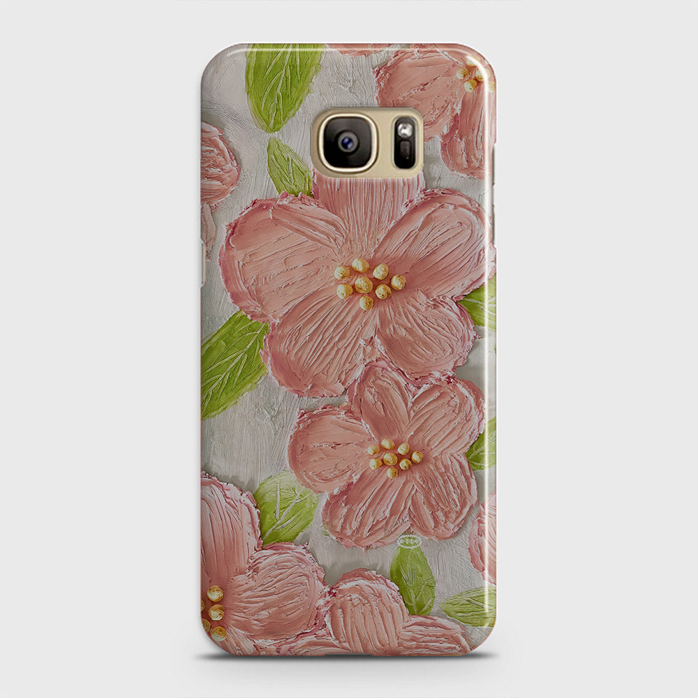 Samsung Galaxy S7 Cover - Floral Series - Design 9 - Pink & Green - Matte Finish - Snap On Hard Case with LifeTime Colors Guarantee
