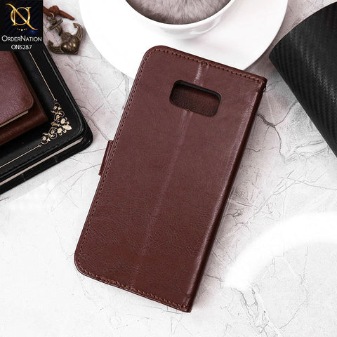Samsung Galaxy S8 Plus Cover - Brown - Premium PU Leather Magnetic Flip Book Card Slots Wallet Soft Case