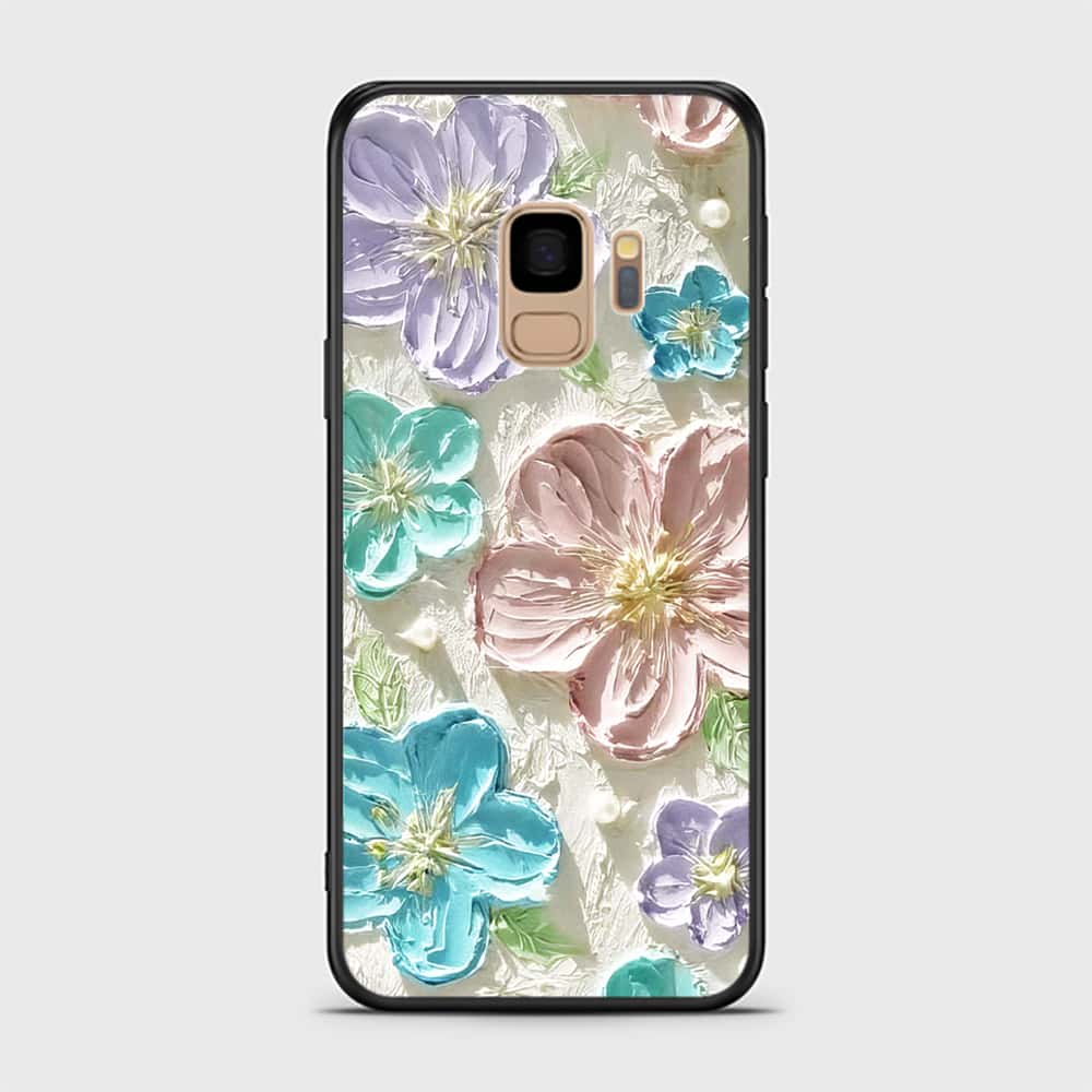 Samsung Galaxy S9 Cover - Floral Series - Design 14 - Blue & Purple- HQ Ultra Shine Premium Infinity Glass Soft Silicon Borders Case