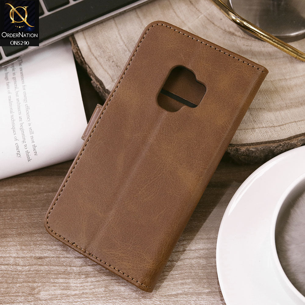 Samsung Galaxy S9 Cover - Light Brown - Premium Business Series Magnetic Leather Wallet Flip book Card Slots Soft Case