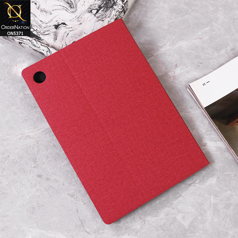 Samsung Galaxy Tab A8 10.5 / SM-X200 / SM-X205 (2021) Cover - Red - Octo PU Leather Fabric Texture Bifold Stand Flip Book Soft Case