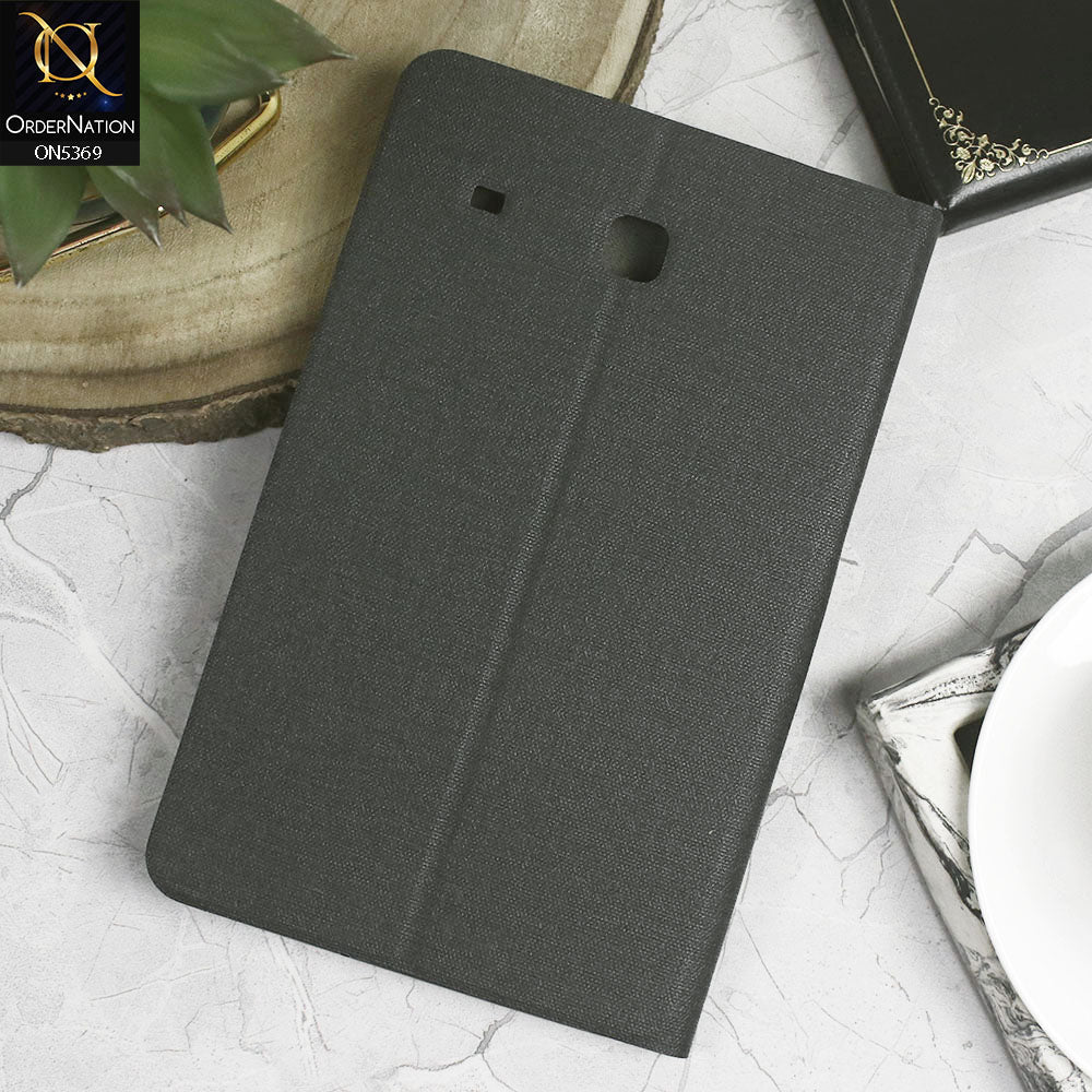 Samsung Galaxy Tab E 8.0 / T377 (2016) Cover - Black - Octo PU Leather Fabric Texture Bifold Stand Flip Book Soft Case
