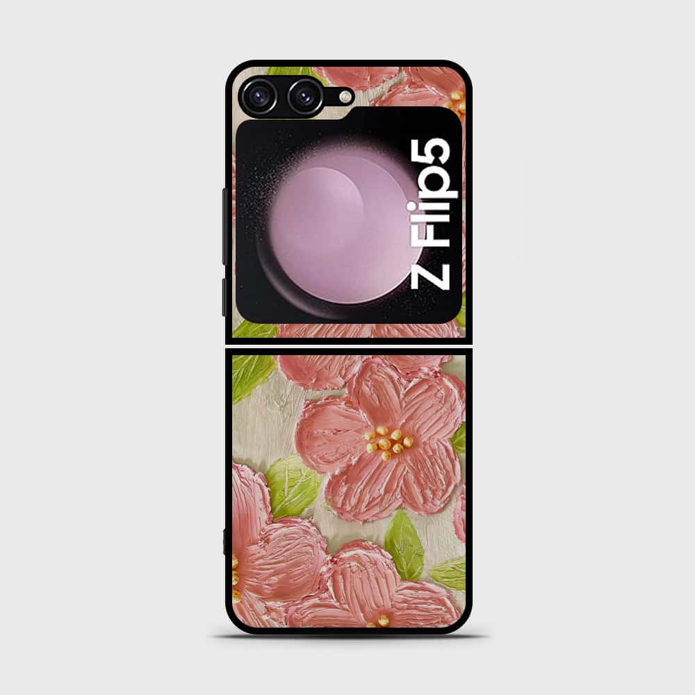 Samsung Galaxy Z Flip 5 5G Cover - Floral Series - Design 9 - Pink & Green - HQ Premium Shine Durable Shatterproof Case
