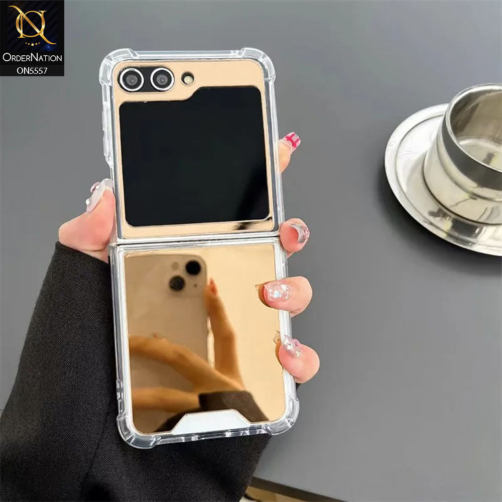 Samsung Galaxy Z Flip 5 5G Cover - Golden - Elegant Ultra Thin Mirror Shockproof Mirror Case