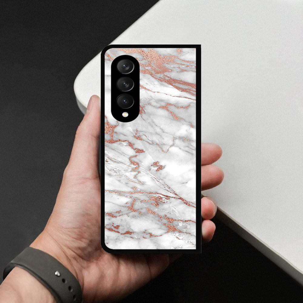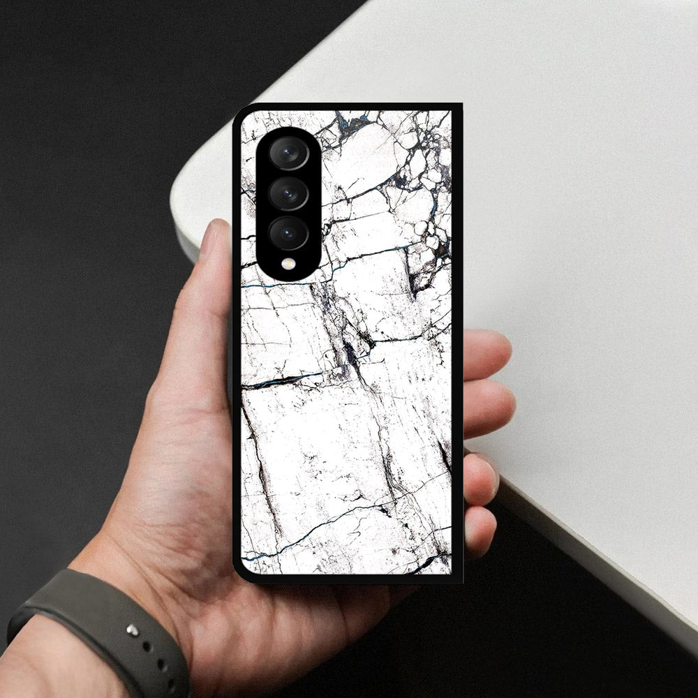 Samsung Galaxy Z Fold 3 5G Cover - White Marble Series 2 - HQ Premium Shine Durable Shatterproof Case