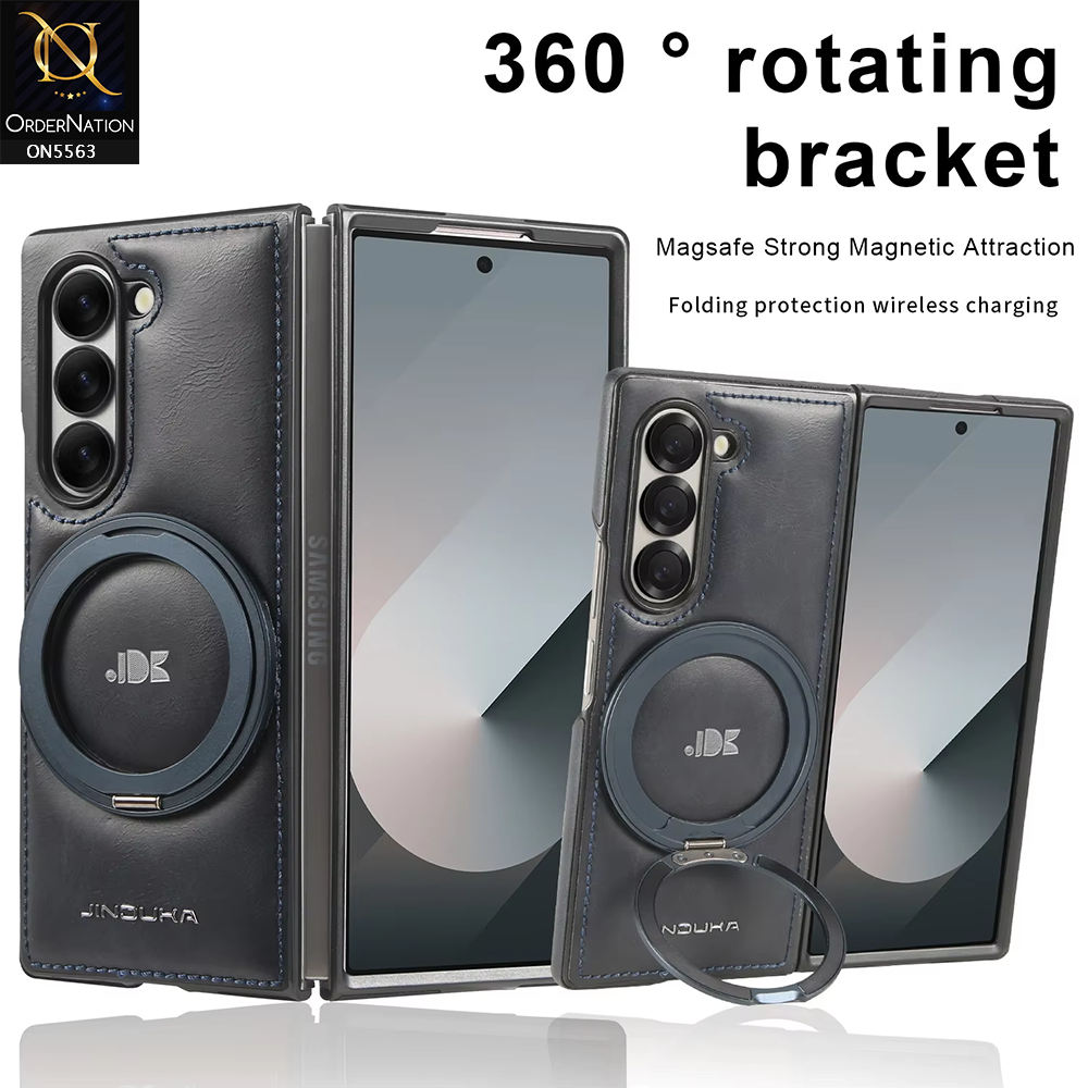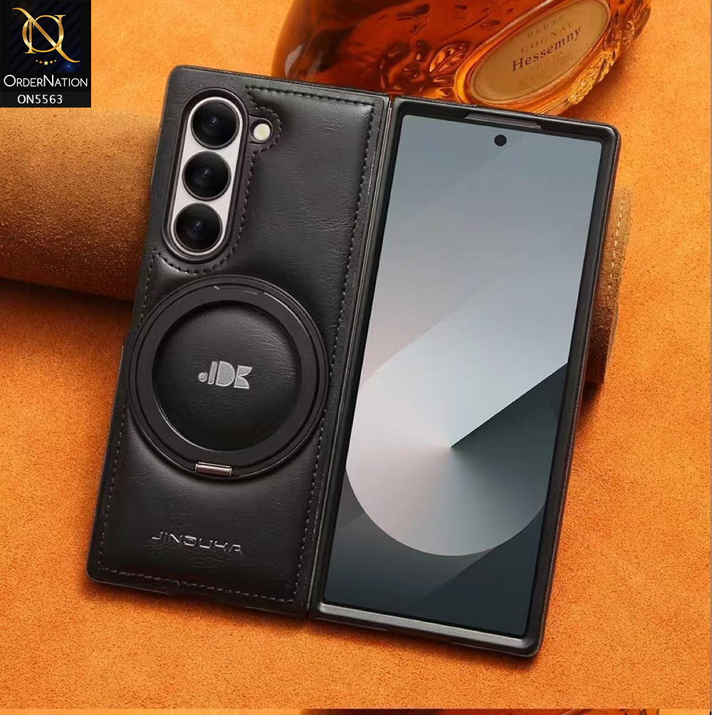 Samsung Galaxy Z Fold 5 5G Cover - Black - New Jinduka Premium Leather Case With Metal Kick Stand And Mage Safe