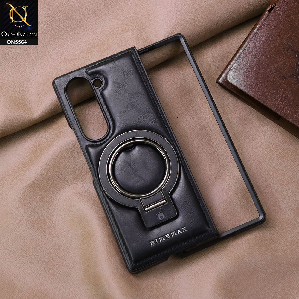 Samsung Galaxy Z Fold 5 5G Cover - Black - New Rimbmax High Quality Leather Case With Metal Camera Ring And KickStand