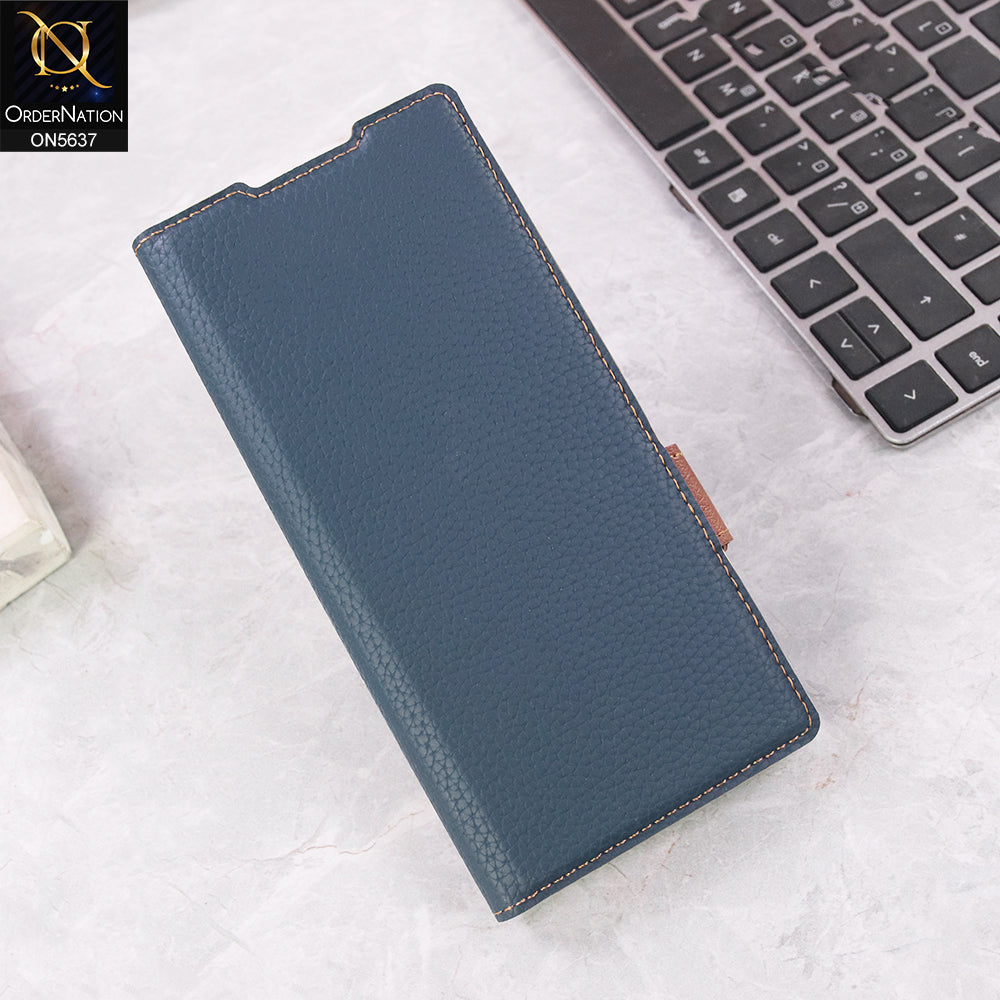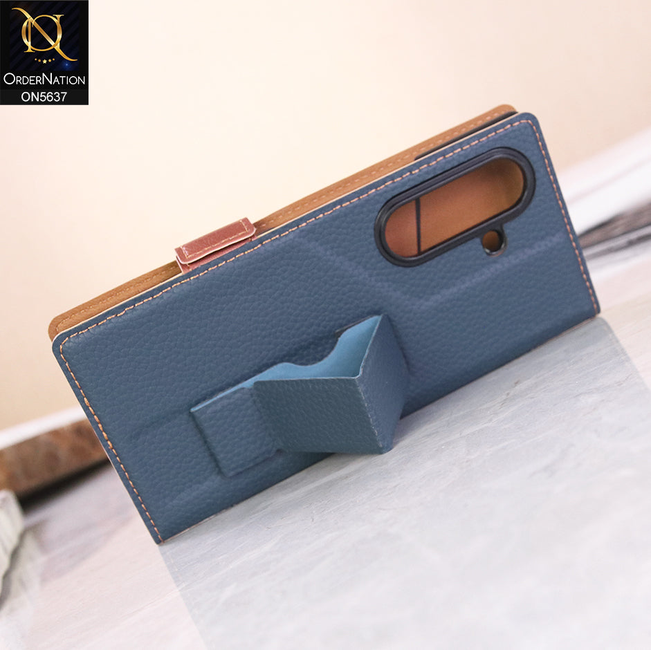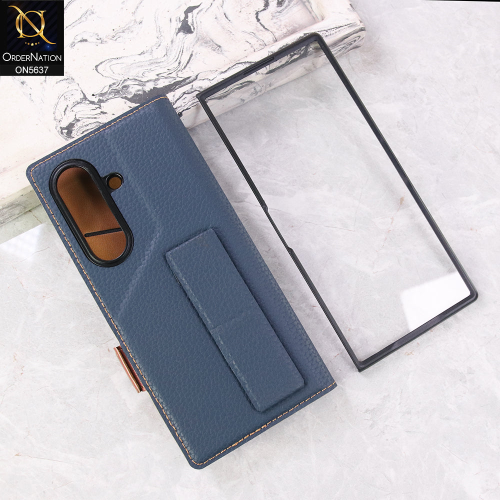 Samsung Galaxy Z Fold 7 Cover + Protector - Blue - New Premium Leather Flip Case With Screen Protector And Kick Stand