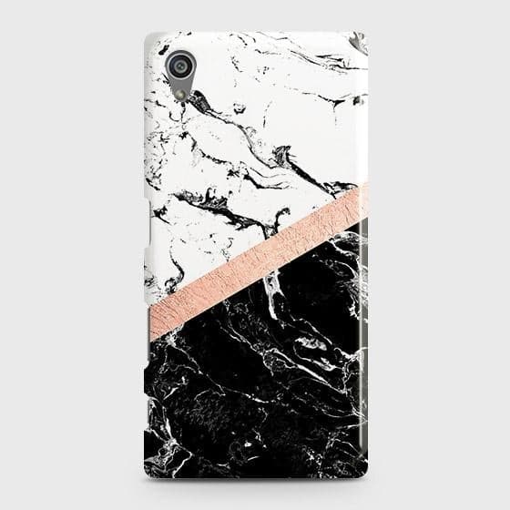 Sony Xperia Z5 Cover - Black & White Marble With Chic RoseGold Strip Case with Life Time Colors Guarantee