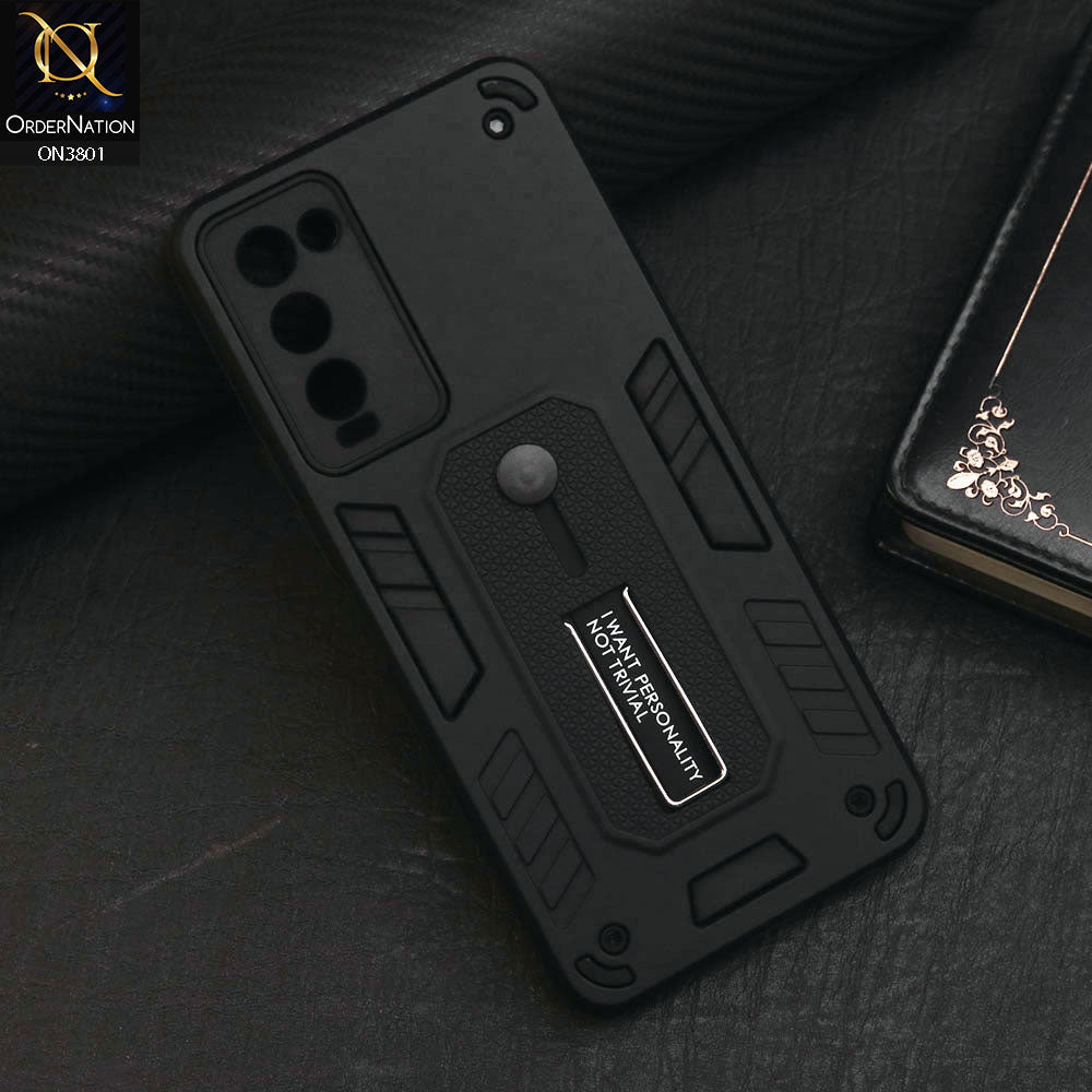 Tecno Camon 18P Cover - Black - Hybrid Stylish Slide Finger Grip With Metal Kickstand Soft Borders Case