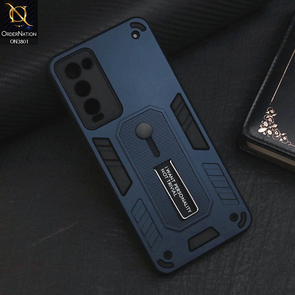Tecno Camon 18P Cover - Midnight Blue - Hybrid Stylish Slide Finger Grip With Metal Kickstand Soft Borders Case