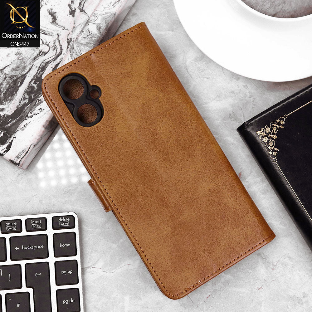 Tecno Camon 19 Neo Cover - Light Brown - Premium Leather Megantic Flip Book Covers With Card Holding Option