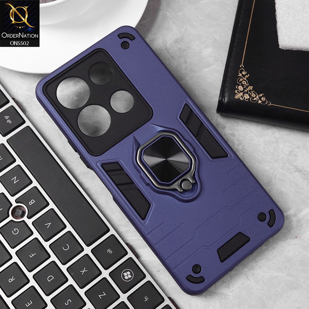 Tecno Pop 7 Cover - Blue - New Dual PC + TPU Hybrid Style Protective Soft Border Case With Kickstand Holder