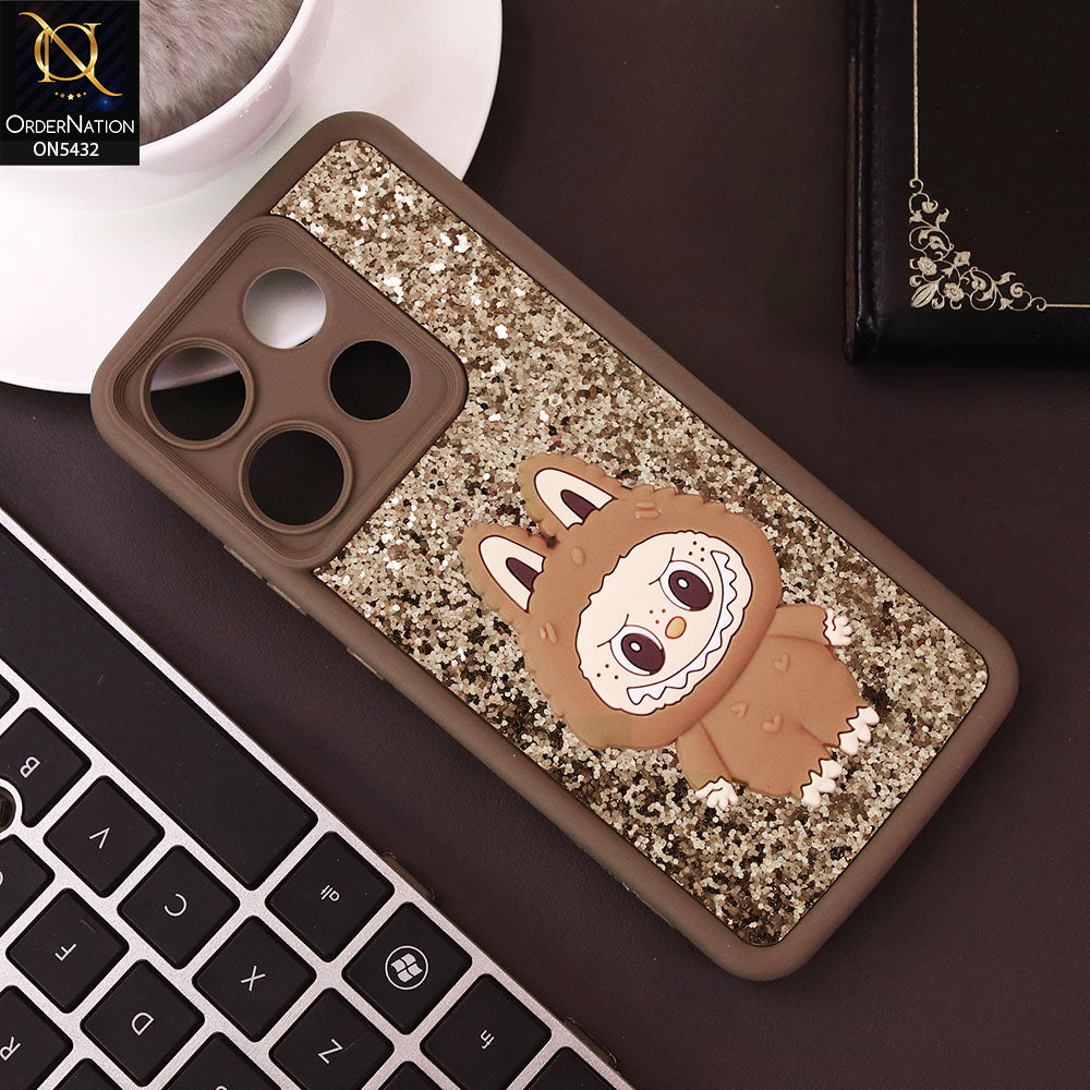 Tecno Pop 7 ProG Cover - Brown - Cute 3D Cartoon Soft Glitter Case