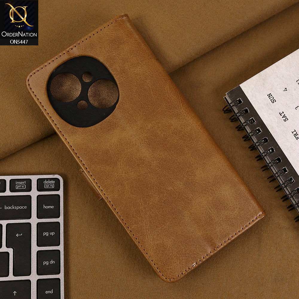 Tecno Pop 9 Cover - Light Brown - Premium Leather Megantic Flip Book Covers With Card Holding Option