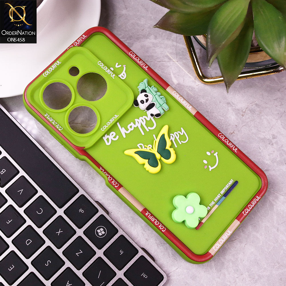 Tecno Spark 20C Cover - Green - Cute Smily 3D Cartoon Soft Silicon Case
