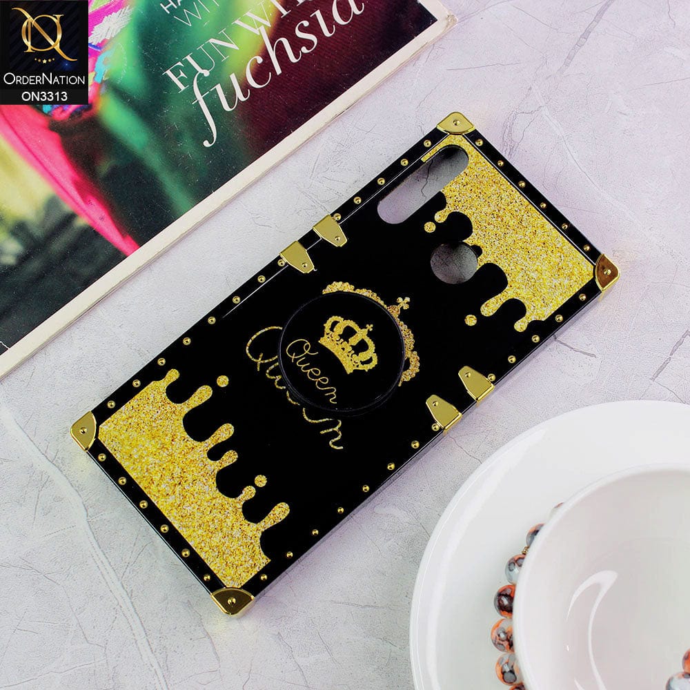 Infinix Note 7 Cover - Black - Golden Electroplated Luxury Square Soft TPU Protective Case with Popsocket Holder