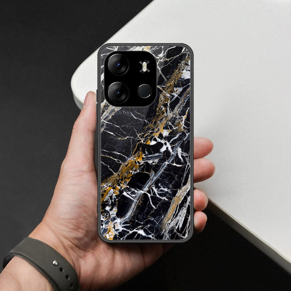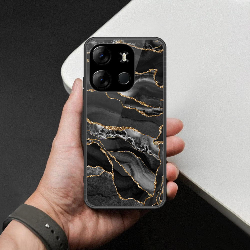 Tecno Spark Go 2023 Cover - Black Marble Series - HQ Ultra Shine Premium Infinity Glass Soft Silicon Borders Case