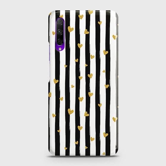 Honor 9X Cover - Trendy Black & White Lining With Golden Hearts Printed Hard Case with Life Time Colors Guarantee