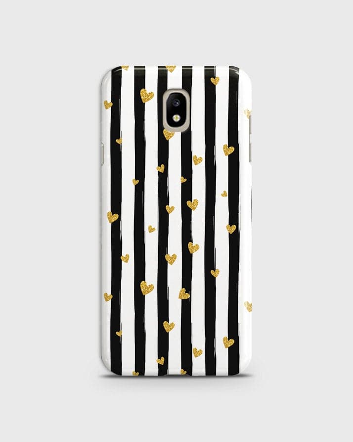 Samsung Galaxy J3 Pro - Trendy Black & White Lining  With Golden Hearts Printed Hard Case With Life Time Colors Guarantee
