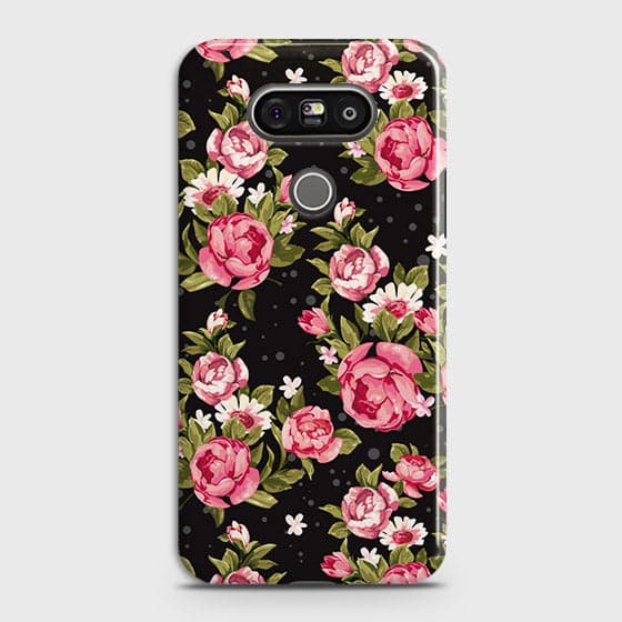 LG G5 Cover - Trendy Pink Rose Vintage Flowers Printed Hard Case with Life Time Colors Guarantee