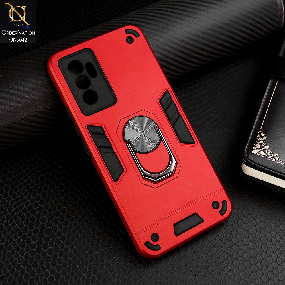 Vivo S10e Cover - Red - New Dual PC + TPU Hybrid Style Protective Soft Border Case With Kickstand Holder