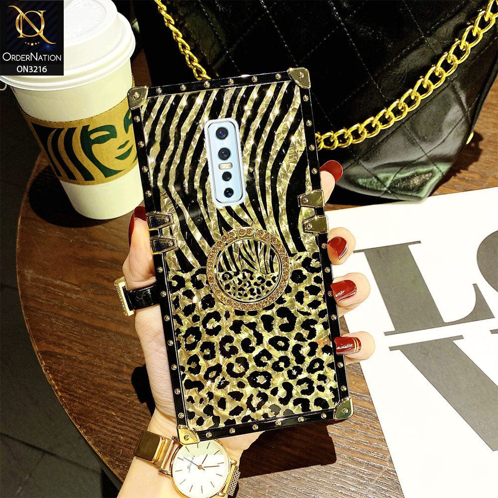 Vivo V17 Pro Cover - Design1 - Trendy Stripes Pattern Golden Square Case With Matching Bling Ring Holder