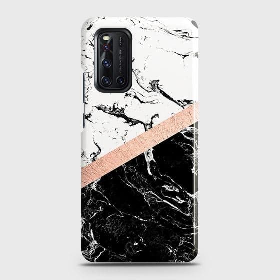 Vivo V19 Cover - Black & White Marble With Chic RoseGold Strip Case with Life Time Colors Guarantee ( Fast Delivery )