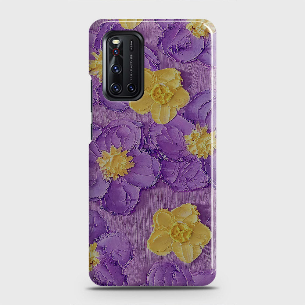 Vivo V19 Cover - Floral Series - Design 8 - Purple & Yellow - Matte Finish - Snap On Hard Case with LifeTime Colors Guarantee