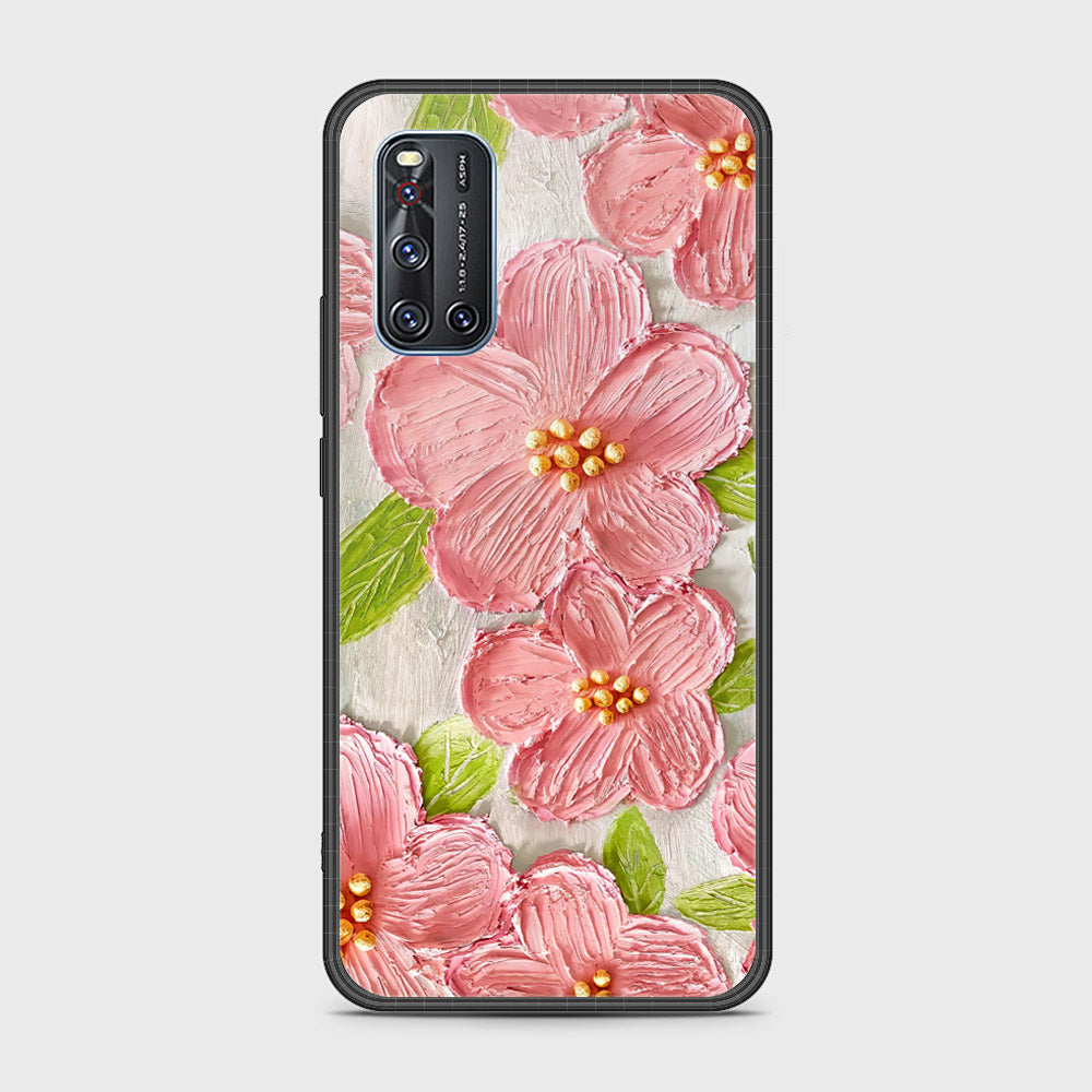 Vivo V19 Cover - Floral Series - Design 9 - Pink & Green - HQ Ultra Shine Premium Infinity Glass Soft Silicon Borders Case