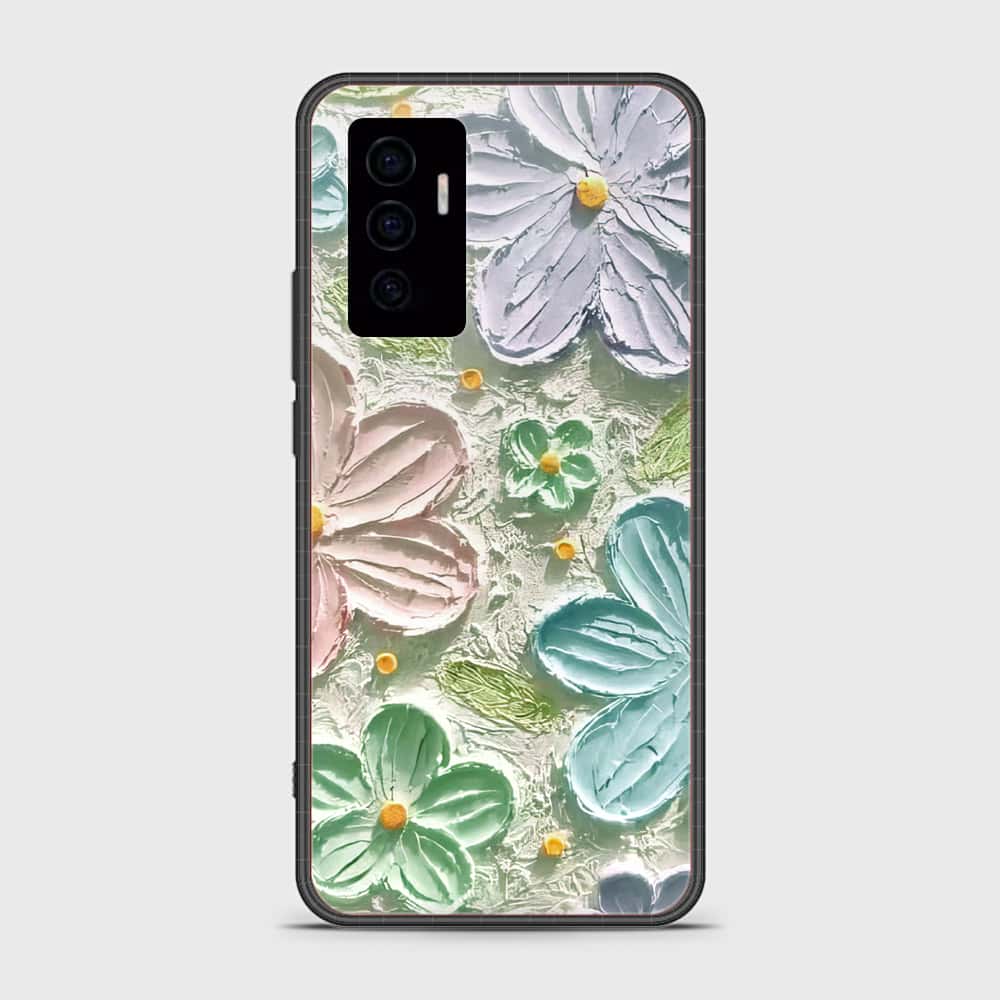 Vivo V23e Cover - Floral Series - Design 15 - Blue & Green - HQ Ultra Shine Premium Infinity Glass Soft Silicon Borders Case