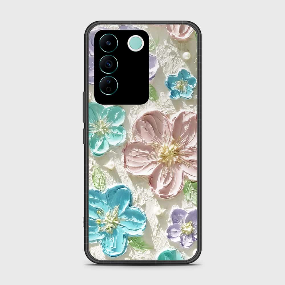 Vivo V27e Cover - Floral Series - Design 14 - Blue & Purple - HQ Ultra Shine Premium Infinity Glass Soft Silicon Borders Case