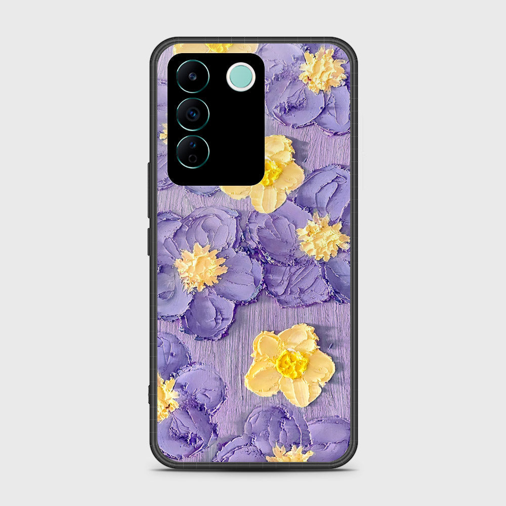 Vivo V27e Cover - Floral Series - Design 8 - Pink & Yellow - HQ Ultra Shine Premium Infinity Glass Soft Silicon Borders Case