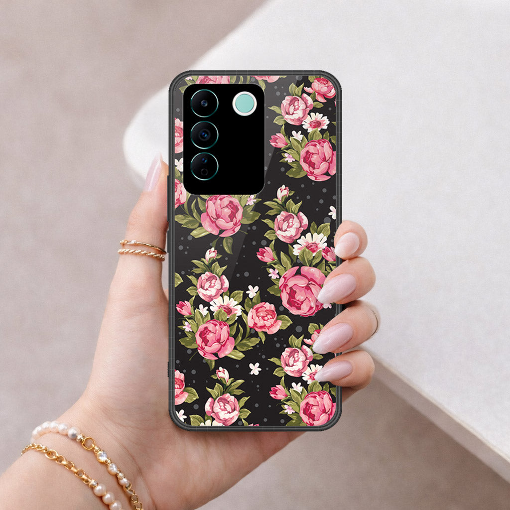 Vivo V27e Cover - Floral Series - HQ Ultra Shine Premium Infinity Glass Soft Silicon Borders Case